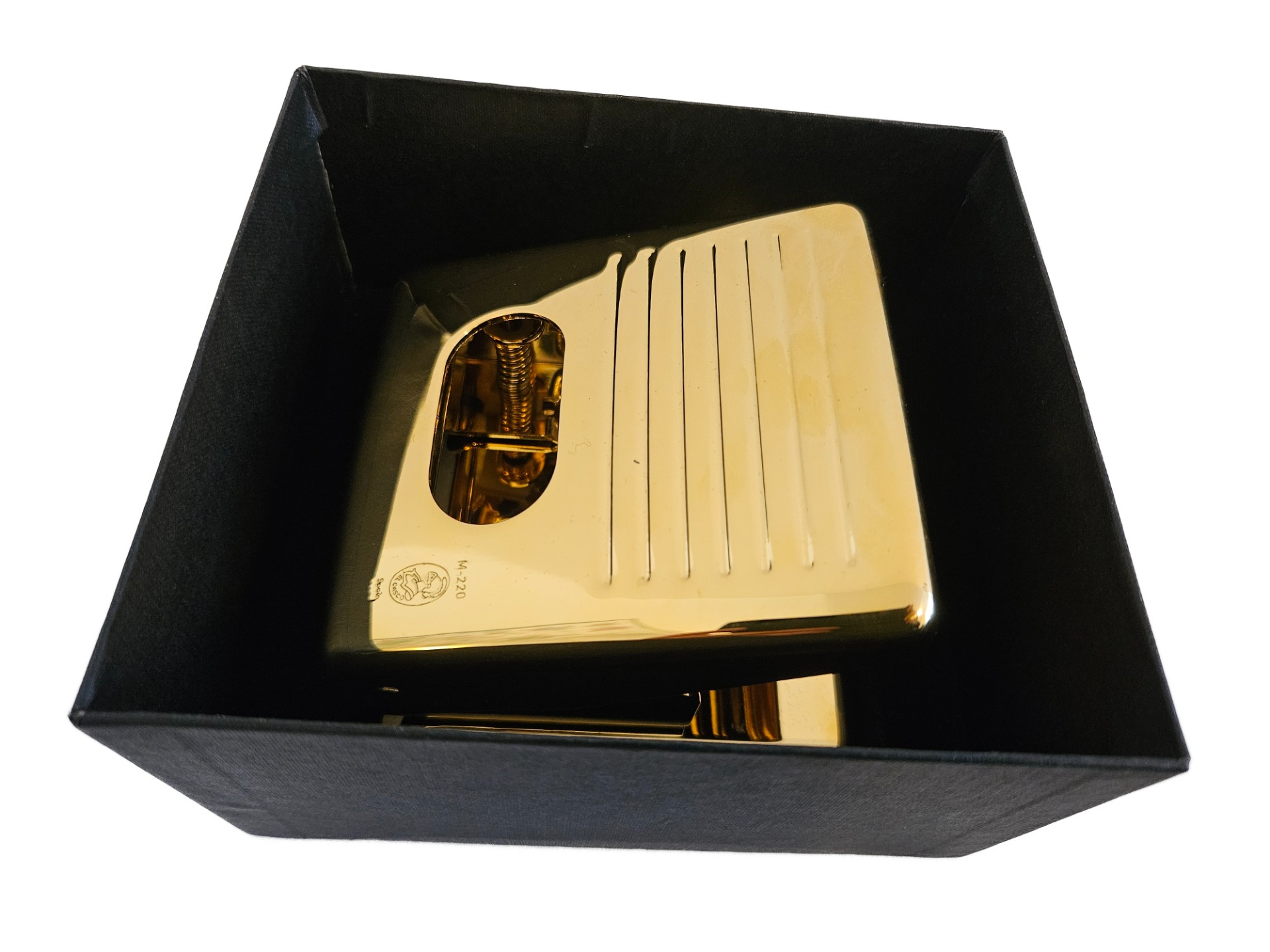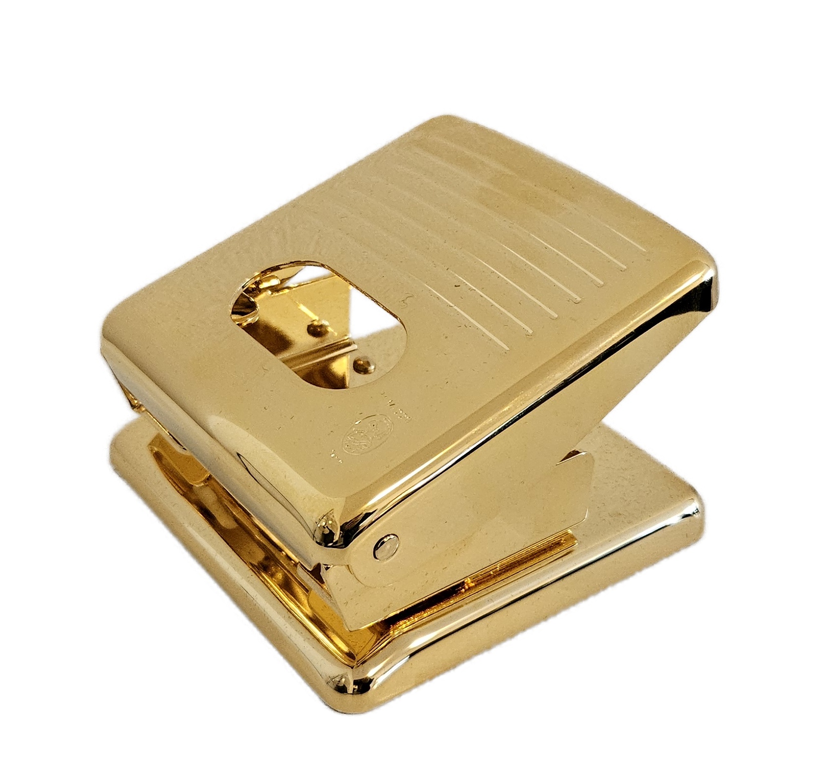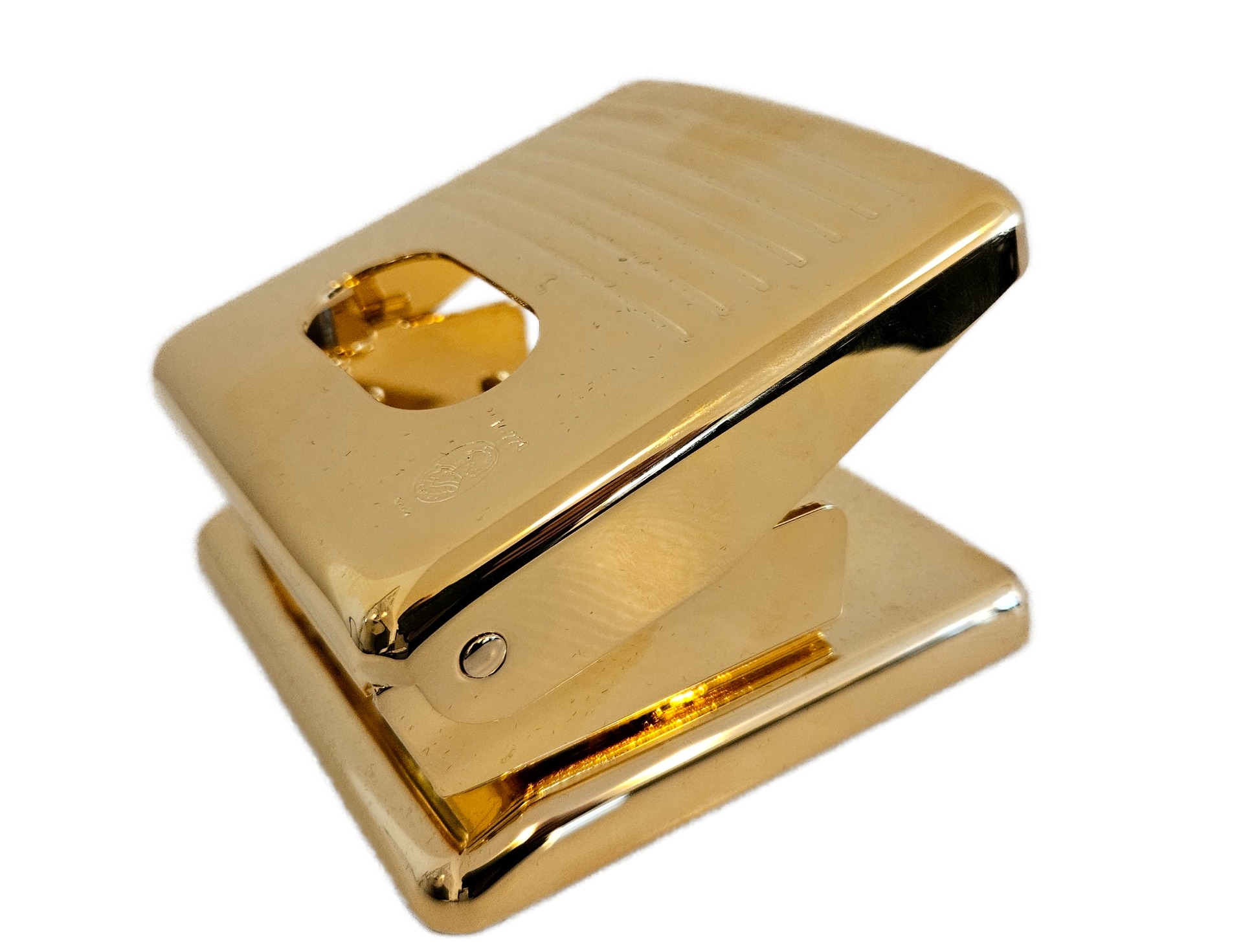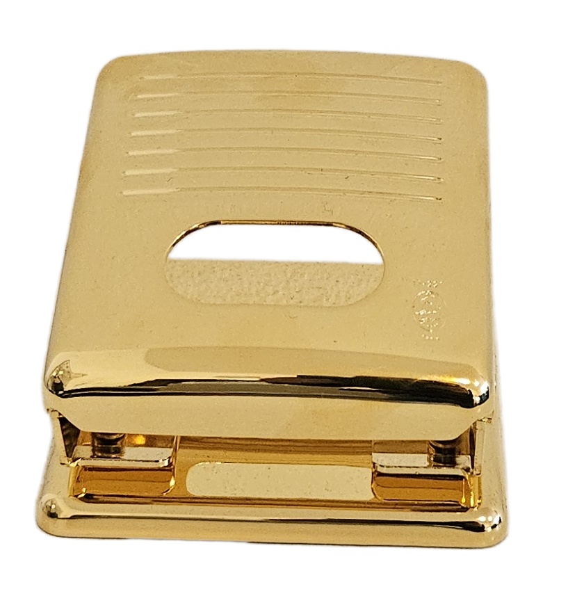 Vysoce kvalitní děrovačka v luxusním pozlaceném provedení. Ručně leštěné.
